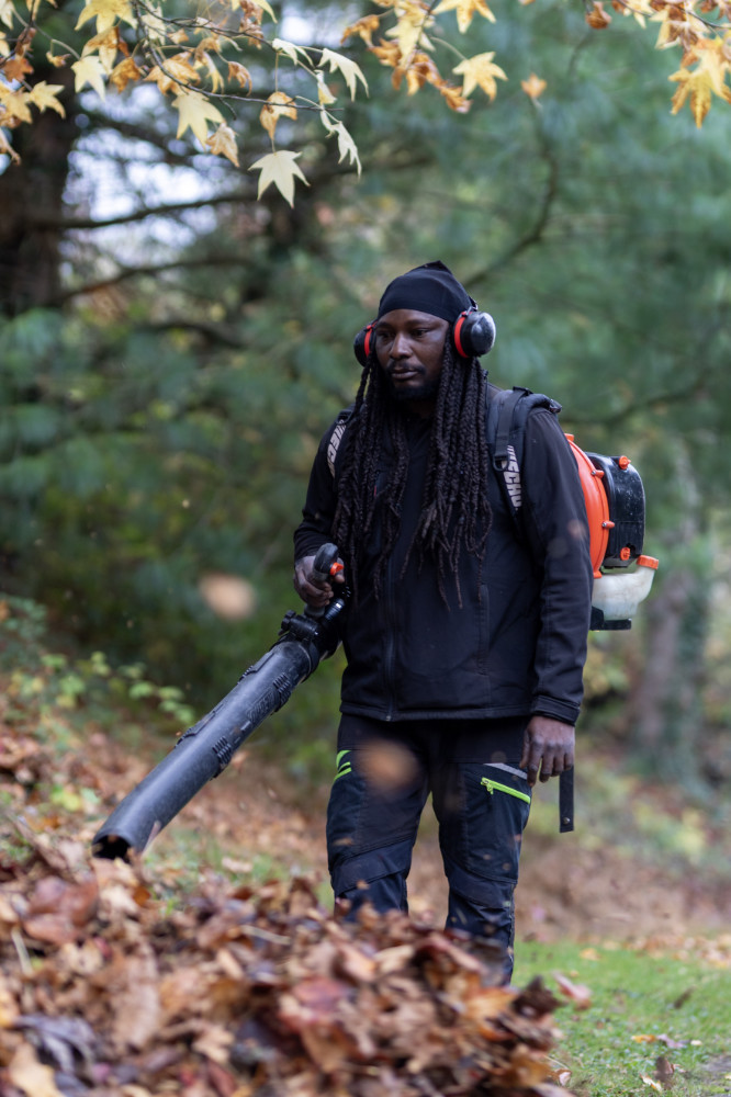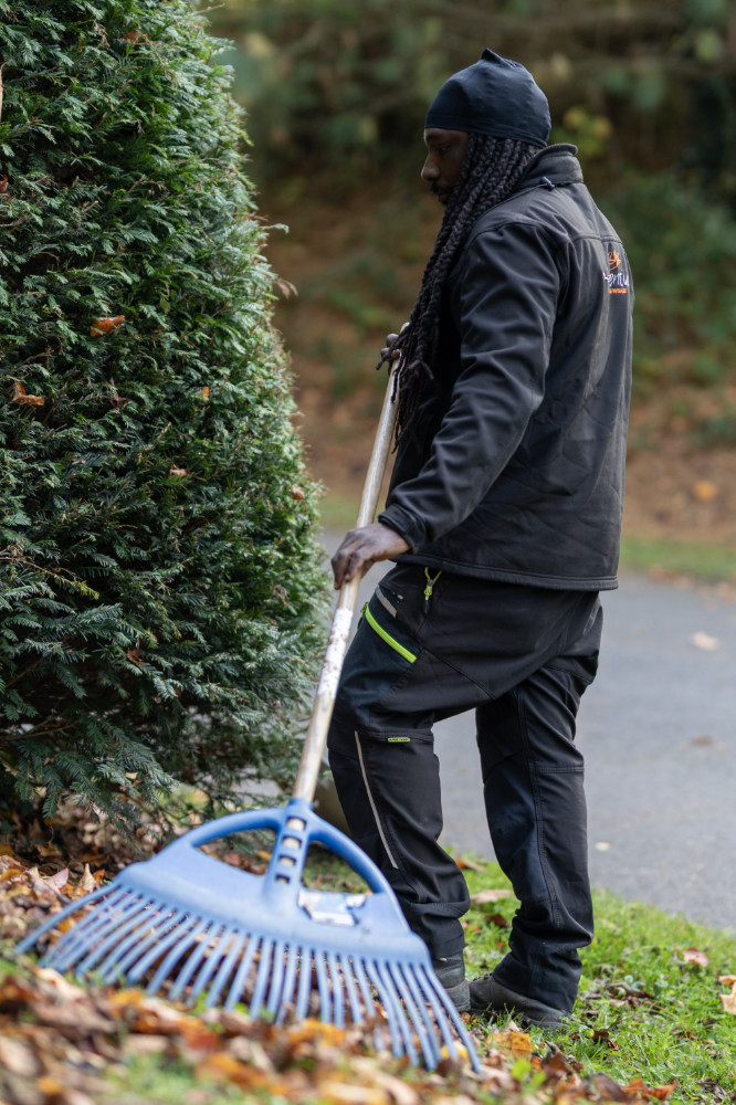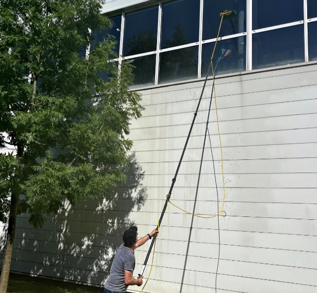 Nos agents en action sur du vitrage de grande hauteur et dans les espaces verts.