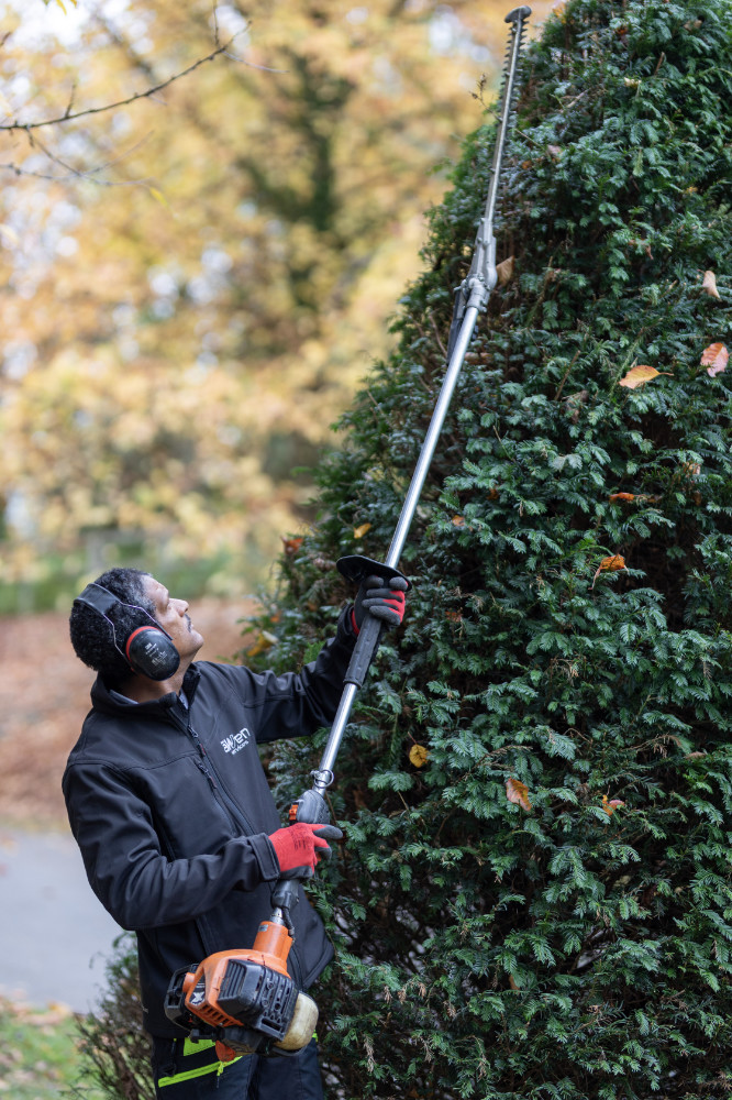 L’élagage des arbres et grands arbustes est réalisé pour des raisons esthétiques, mais aussi pour éviter les risques (chute de branches, obstruction de la lumière). Cette intervention est particulièrement importante en automne et après les intempéries.